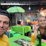 Heute Morgen wollte Marco mal das Fitnessstudio ausprobieren aber das war leider alt und nicht so geil. Auch den Pool werden wir während unseres Aufenthaltes nicht benutzten. Ich hatte ziemlich Kopfschmerzen und war noch kaputt, sodass wir uns entschieden heute einen Ruhetag zu machen. Also blieben wir im Zimmer, Marco konnte arbeiten, wir schauten ein bisschen Serie und einen Film. Marco holte uns Frühstück aus einem Café und Mittags einen Snack (Suppe und Obst) vom Markt, was wir jeweils draußen auf der Veranda aßen. Abends liefen wir dann nochmal los, ich dachte, eine Runde an der frischen Luft tut bestimmt gut. In der Nähe gab es eine Straße mit einheimischen Restaurants, die alle ein bisschen suspekt aussahen, aber da wir nichts anderes fanden, setzten wir uns hier hin. Bei fried Rice kann man wohl nicht so viel falsch machen, also bestellten wir zwei Portionen und bekamen zwei Gläser Wasser für zusammen ca. 2,50 €.