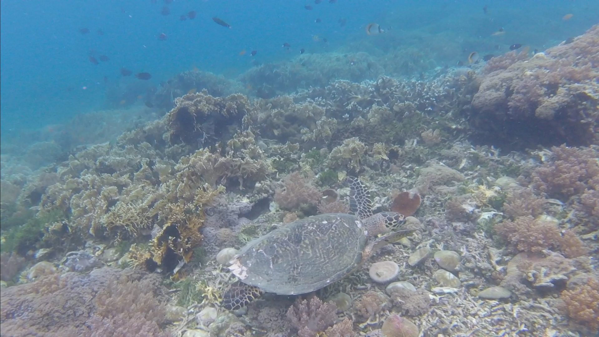 Am ersten Spot (vor Gili Anyaran) gab es Korallen und viele bunte Fische. Allerdings auch viele winzige Quallen, die einen einige Male ziemlich gezwickt haben. Das Wasser war auch recht kühl, also nicht so badewannenwarm wie wir bisher kannten. Am zweiten Spot (vor Gili Gede) gab es noch einen kleinen Bereich mit blauen Korallen, der Rest ist leider schon abgestorben. Das sah ziemlich cool aus, blaue Korallen hatten wir noch nie gesehen. Beim dritten Spot (vor Gili Rengit) hatten wir Glück und konnten eine große Meeresschildkröte beobachten. Außerdem konnten wir dort Clownfische in den Anemonen entdecken. Beim letzten Spot (vor Gili Goleng) haben wir zum ersten Mal Seepferdchen gesehen. Sie waren sehr schwer zu finden, weil sie gut getarnt waren zwischen dem Gras, aber unser Bootsführer war mit im Wasser und hat zwei gefunden und uns gezeigt. Außerdem waren dort viele Seesterne im Sand.
