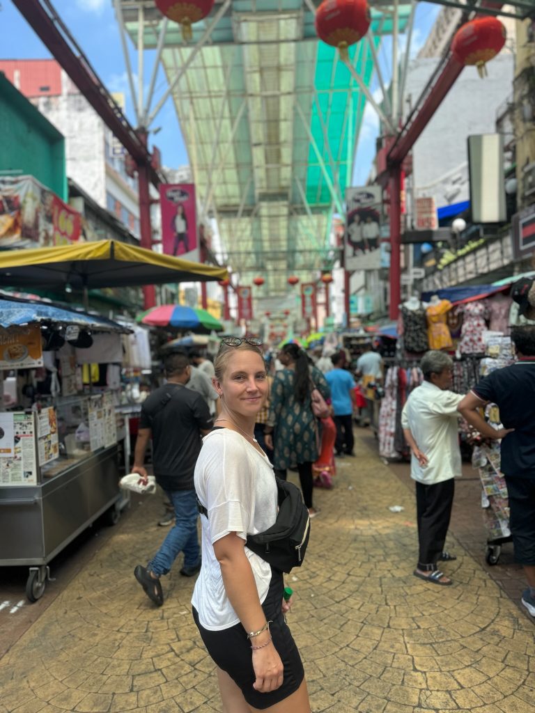 Nach einem entspannten Frühstück gingen wir zu Fuß in die Innenstadt, um ein paar Sehenswürdigkeiten abzulaufen. Zuerst steuerten wir den Merdeka Square an und kamen dabei an der Jamek Moschee vorbei. Weiter ging es über die Jalan Petaling Street, eine Marktstraße. Danach waren wir echt kaputt von der Hitze und gingen zurück zu unserer Unterkunft.
