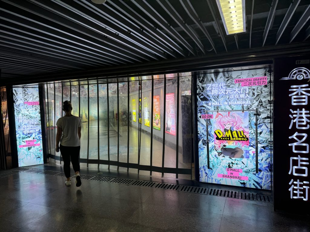 Am Ende der Straße waren wir an der Kreuzung Richtung unseres Hotels. Hier suchten wir die 1930er Straße, eine unterirdische Straße in altem Design, aber haben sie nicht gefunden. Stattdessen landeten wir in der Untergrund „Hongkong-Mall“ für die Anime-Scene.