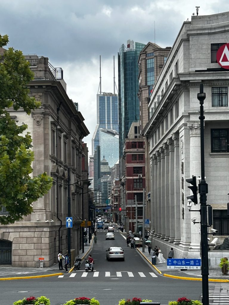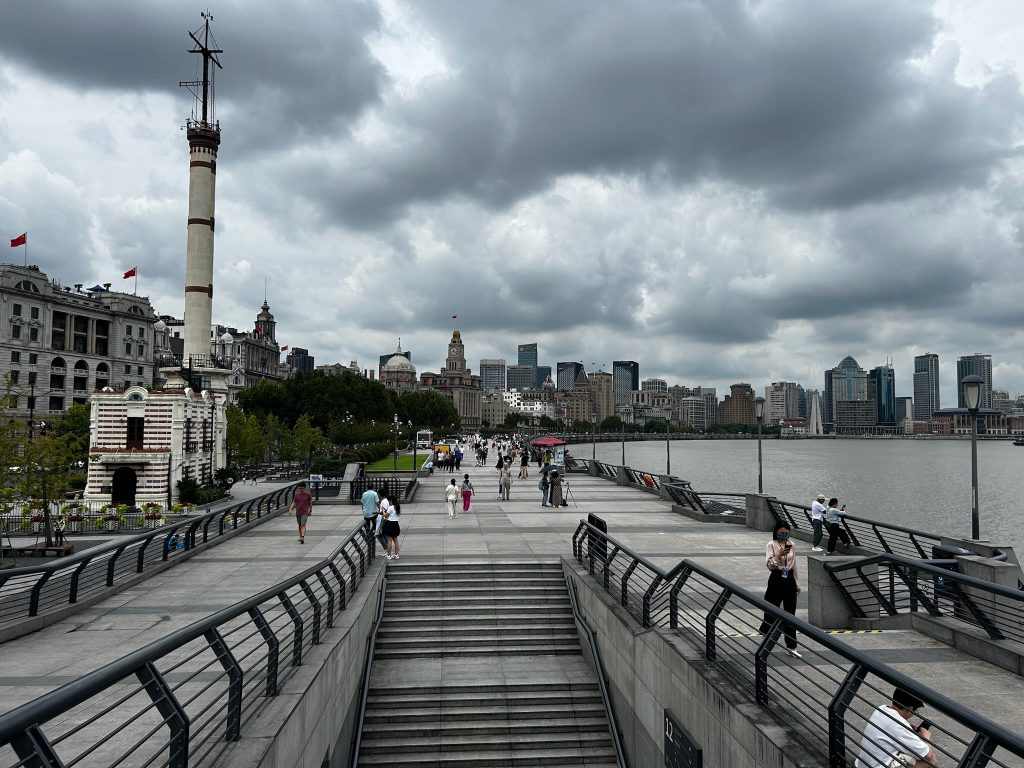 Danach liefen wir weiter bis zum Flussufer „the Bund“ am Fluss Huanpu. Hier standen einige Kolonialgebäude und man hat einen guten Blick auf das Finanzzentrum „Pudong“ am anderen Flussufer. Wir liefen ein Stück auf der Promenade am Fluss entlang nach Norden.