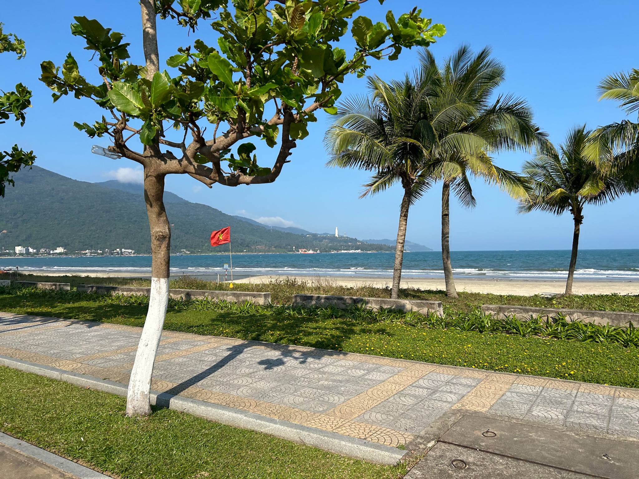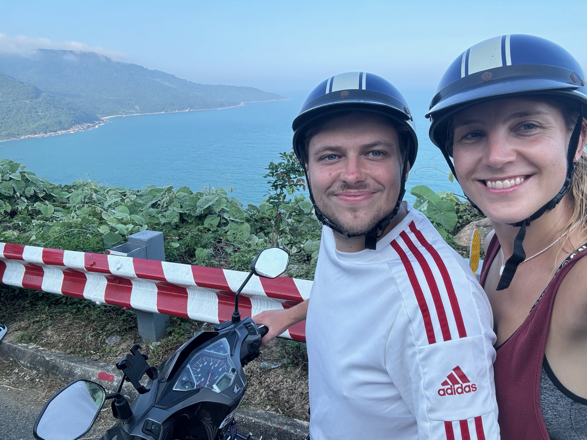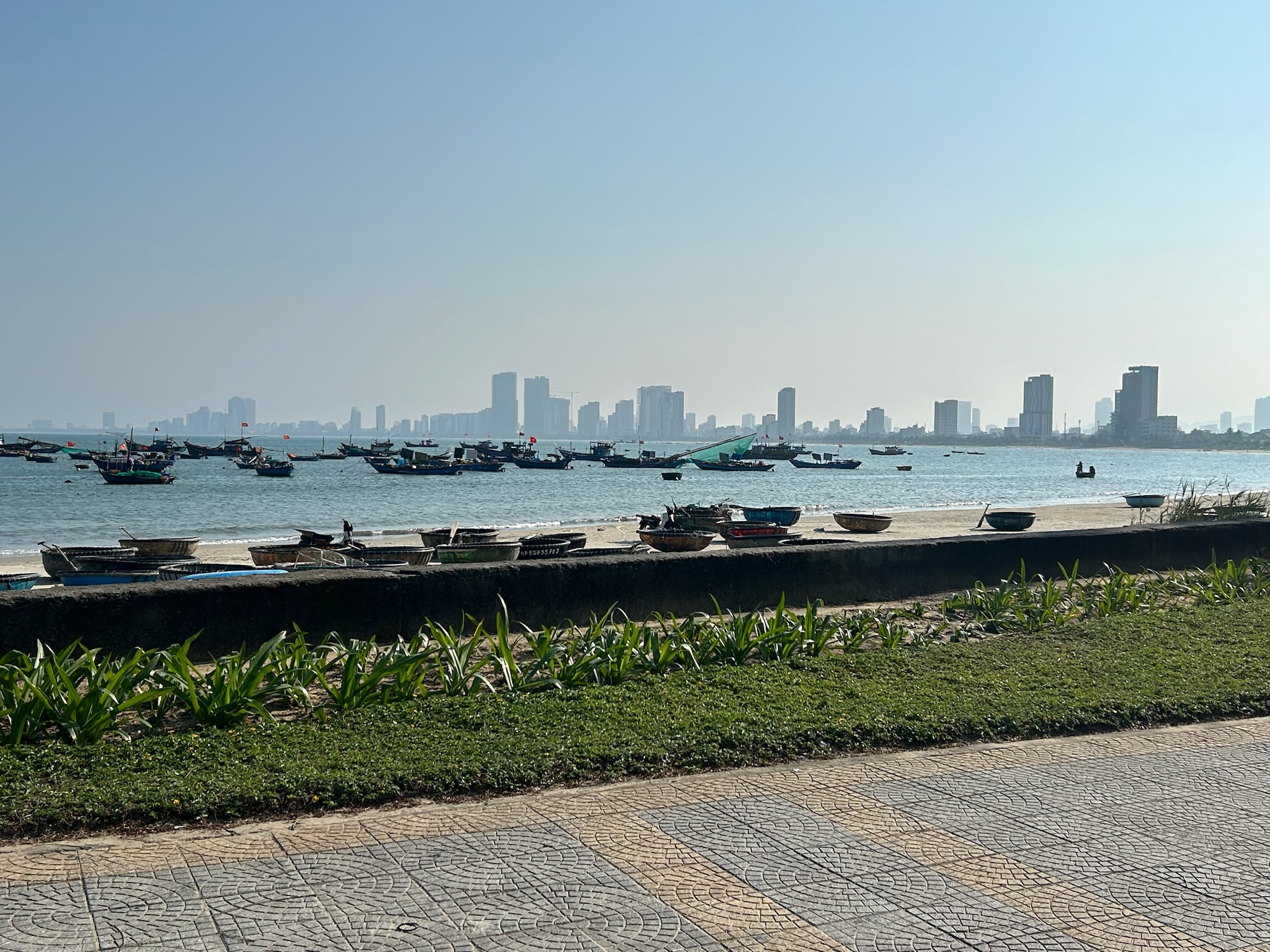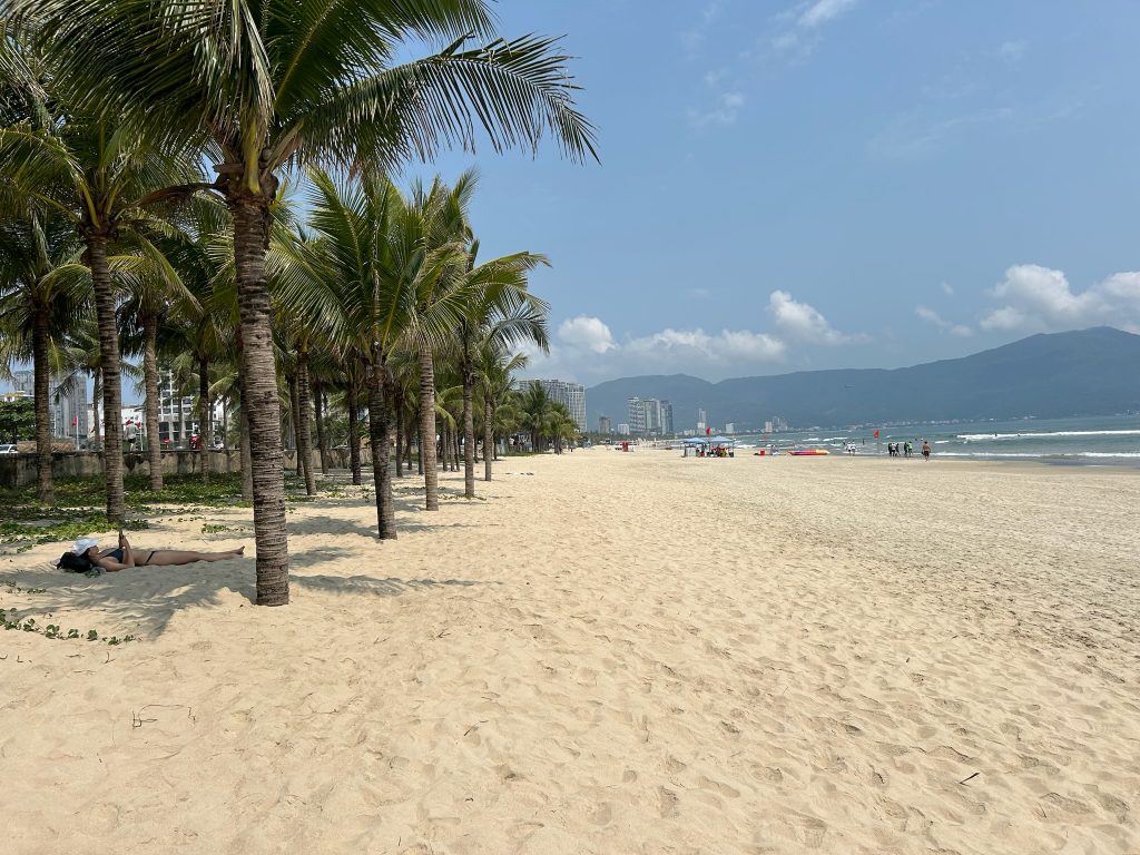 Nach einer kurzen Nacht sind wir um 8 Uhr aufgestanden, weil wir das Frühstücksbuffet bis 9 Uhr probieren wollten – es war wie erwartet (nicht so gut). Danach chillten wir kurz auf dem Zimmer bis wir an den Strand gingen. Hier ist die Strandpromenade wie in Nha Trang – nur weniger eng bebaut und der Sand ist weißer und feiner. Ich legte mich unter eine Palme in den Sand, während Marco joggen ging. Zwischendurch holten wir uns ein Banh Mi, Eiskaffee und Fruchtshake bei einer Strandbude. Gegen 15 Uhr liefen wir zu einer Rollervermietung in der Nähe und liehen uns einen Roller für drei Tage.