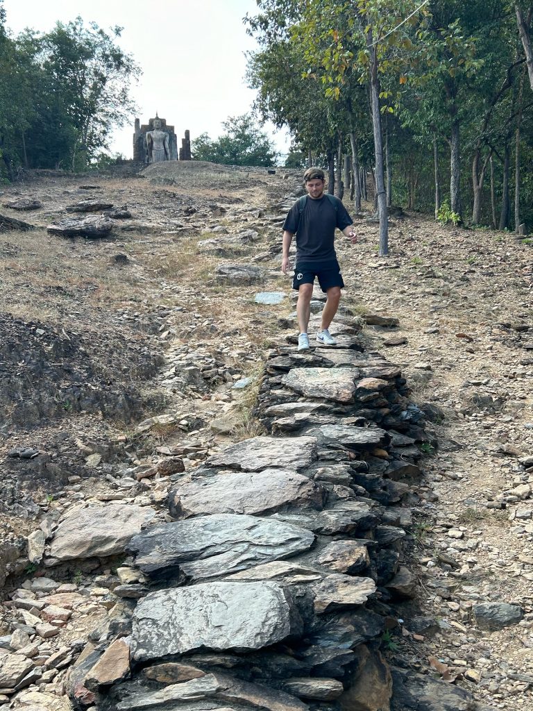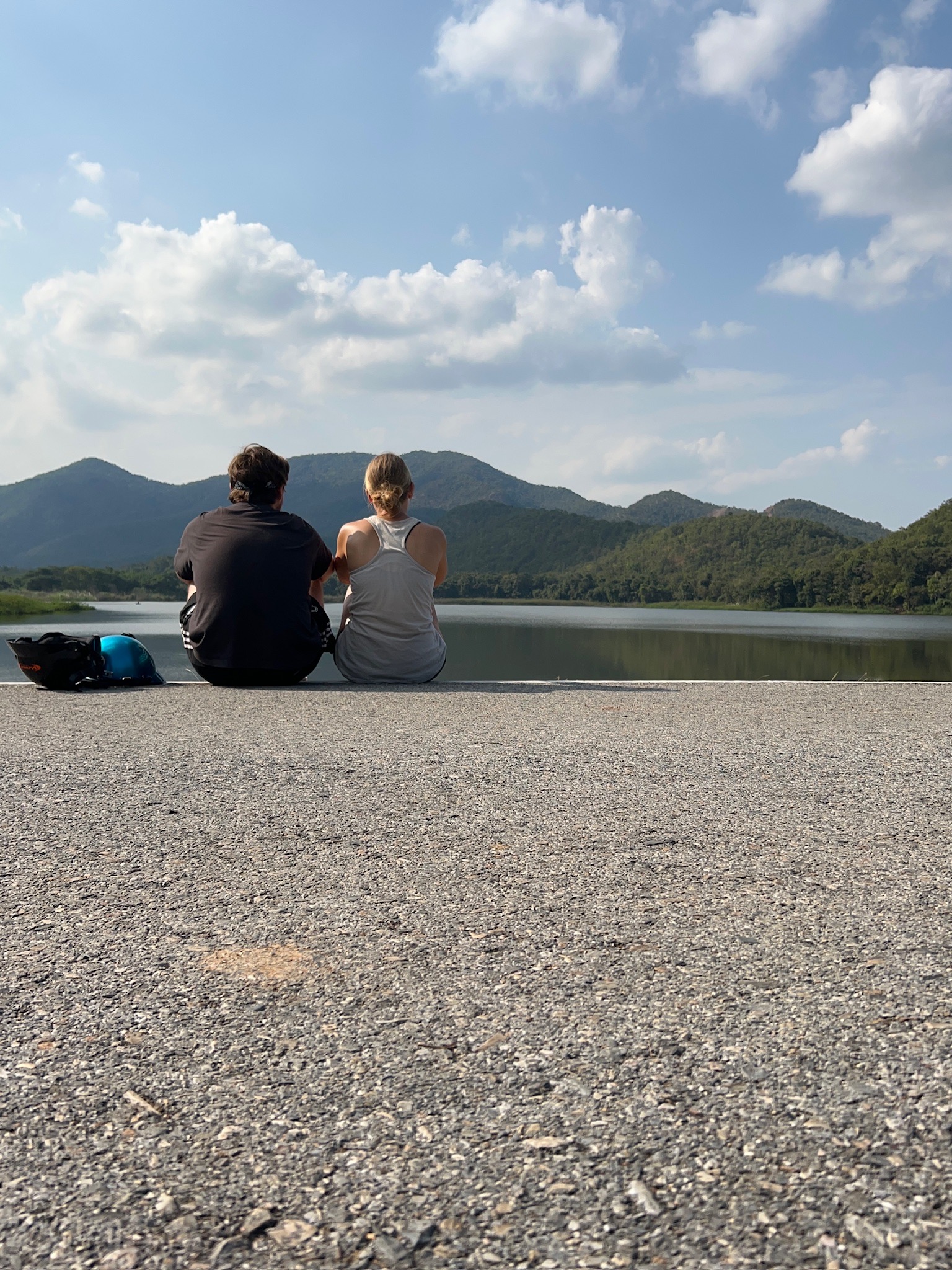 Am frühen Nachmittag fuhren wir los nach Alt-Sukhothai. Da wir den Historischen Park am nächsten Tag besichtigen wollten, cruisten wir heute mit dem Roller durch die Gegend, einmal um den Historischen Park herum. Wir fuhren durch Felder, durch die alte Stadtmauer, an einem See und an vielen Ruinen vorbei. Auf dem Rückweg zur Unterkunft mussten wir noch Tanken und uns tat schon ganz schön der Hintern weh.