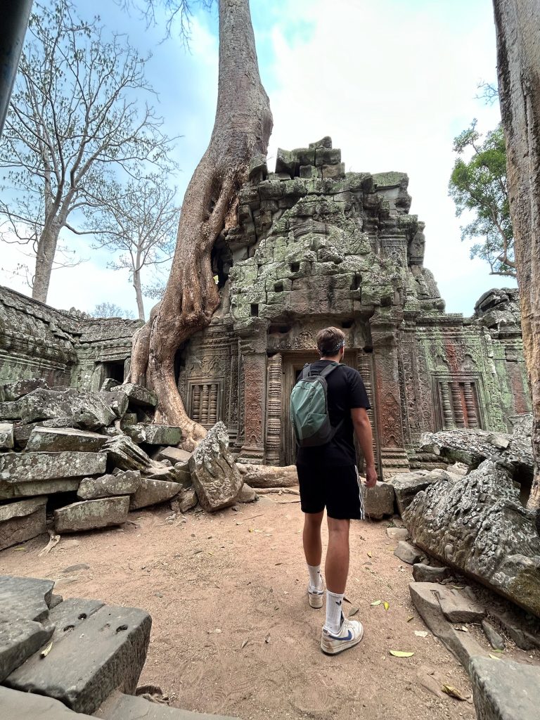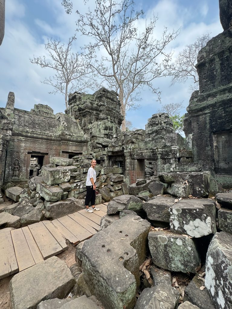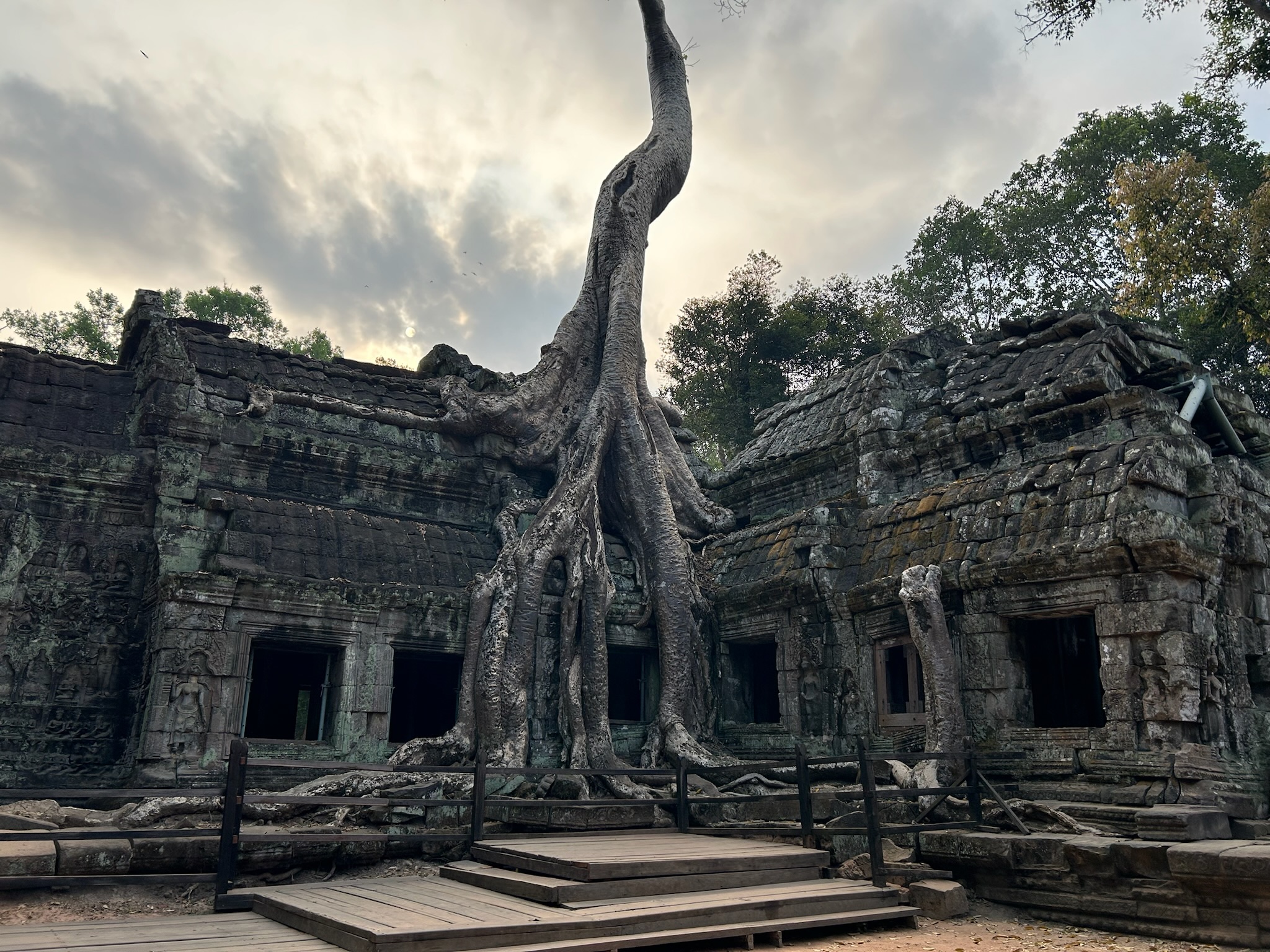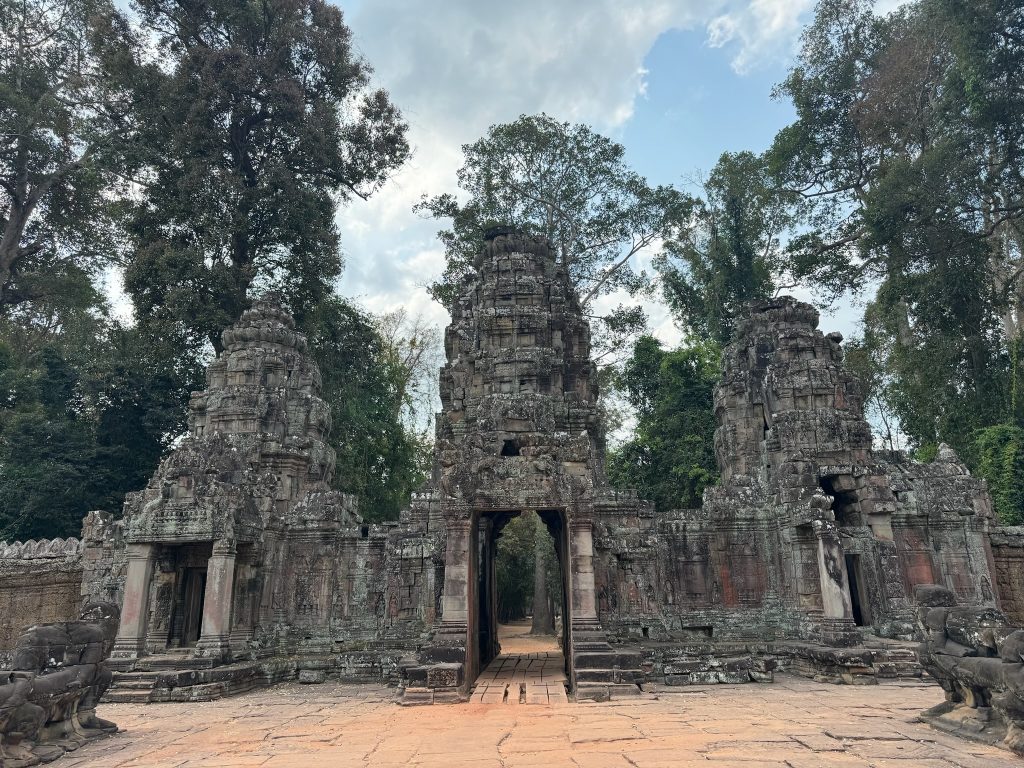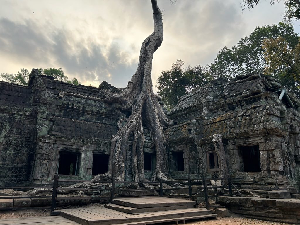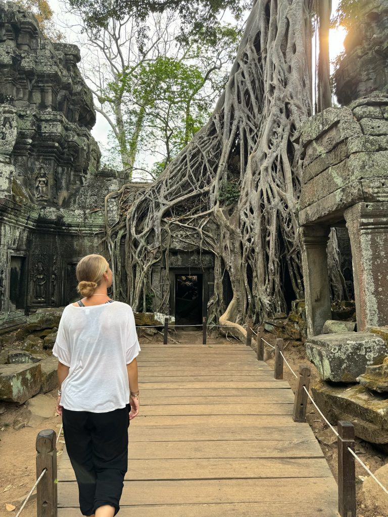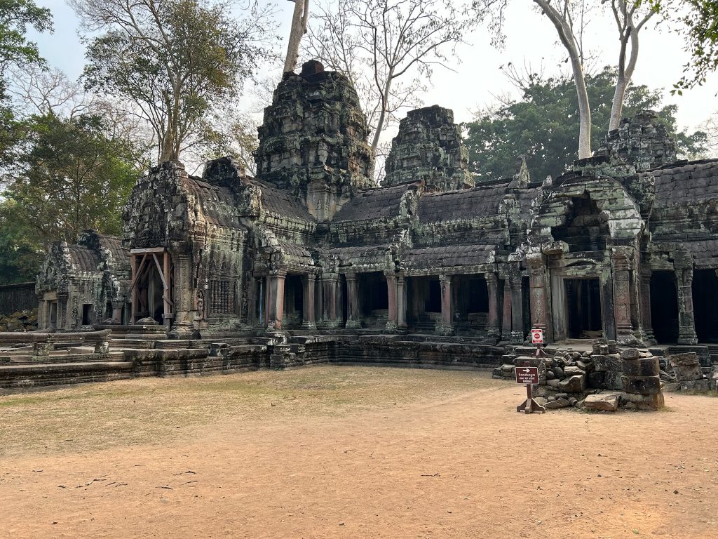 Heute sollte es wieder früh zur Tempelanlage gehen, um den Menschenmassen und der Hitze etwas zu entgehen. Vorher gab es Joghurt, ein Croissant und etwas Obst zum Frühstück. Um 7:30 Uhr fuhren wir los zur Tempelanlage, die restlichen, kleineren Tempel abklappern. Als erstes fuhren wir zum Ta Prohm Tempel, in dem Tomb Raider gedreht wurde.