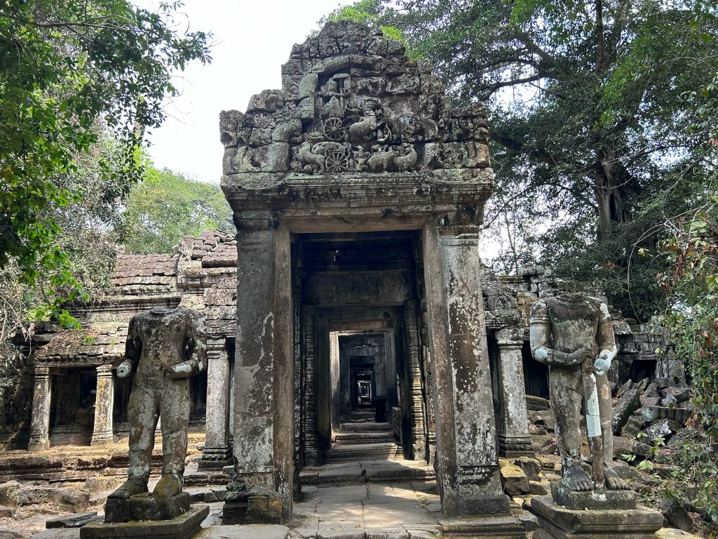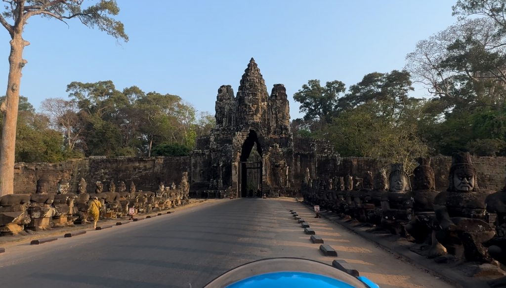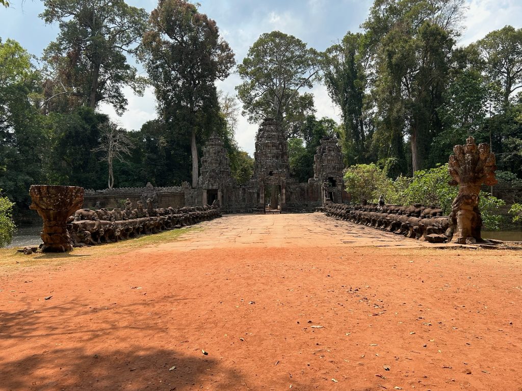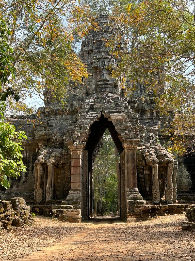 Anschließen fuhren wir den Rundweg weiter aber hielten nicht mehr an jedem kleinen Tempel, außer noch am Prasat Preah Khan. Danach fuhren wir noch durch das nördliche und östliche Tor der Stadtmauer von Angkor Thom, die alle ebenfalls mit den beeindruckenden Stein-Köpfen geschmückt sind.