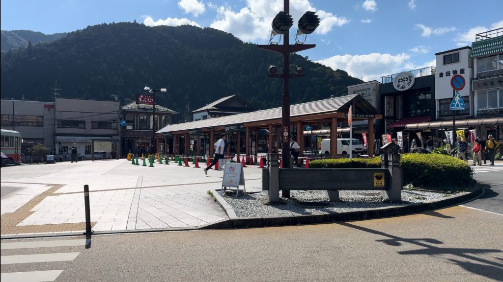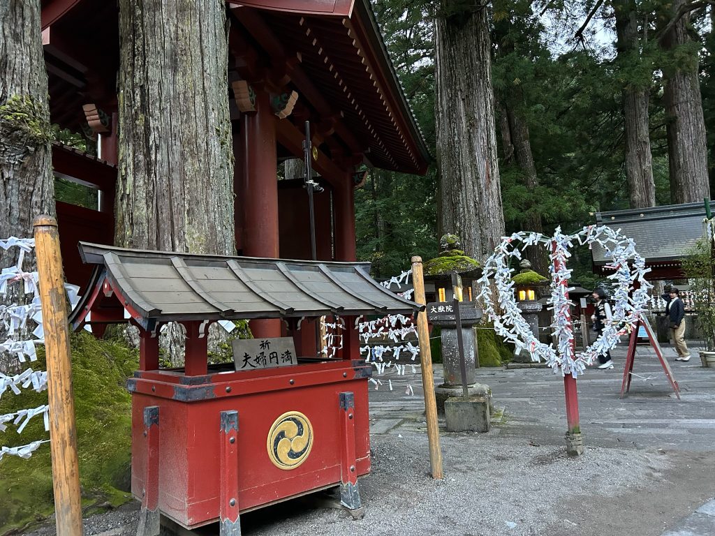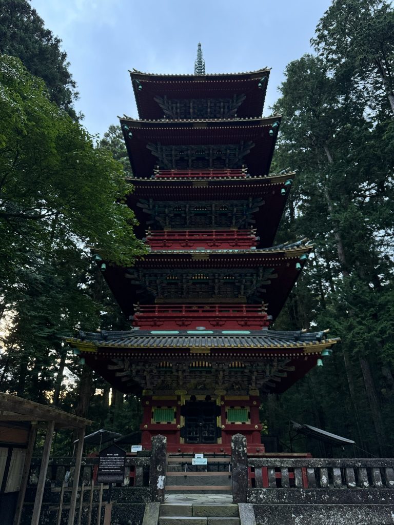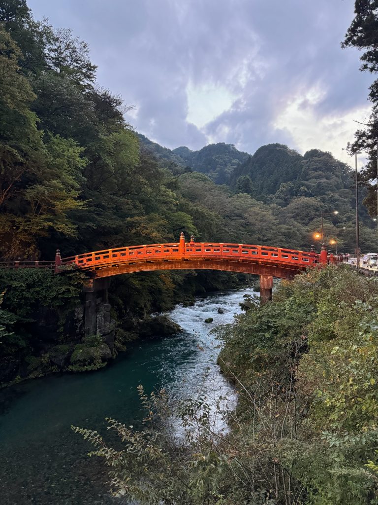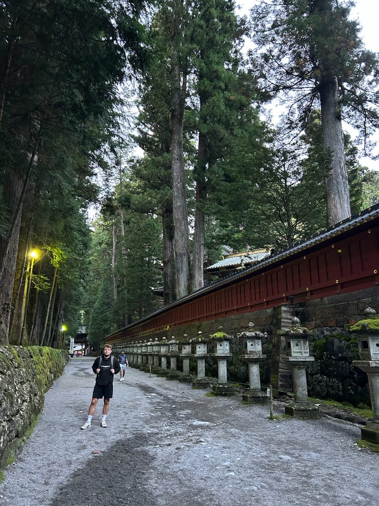 Für heute hatten wir einen Tagesausflug ins 150 km entfernte Nikko geplant. Wir standen früh auf und schmierten uns Brote als Frühstück. Wir fuhren mit der Metro zum Bahnhof Asakusa, von dem der Express Zug fährt. Um 9:30 Uhr waren wir am Bahnhof und wollten am Automaten ein Ticket kaufen (10€ p.P.). Da die Züge schon ausgebucht waren, fuhr der nächste Zug mit freien Sitzplätzen erst eine Stunde später. Zur Überbrückung wollten wir ein Café suchen, liefen durch die Straßen hinterm Bahnhof, aber haben kein passendes gefunden. Also wollten wir einfach schon zum Gleis gehen – ein Glück, denn an der Schranke kamen wir mit dem Ticket nicht rein und erfuhren vom Mitarbeiter, dass wir zusätzlich noch ein „Basisticket“ brauchen. Dafür mussten wir auf die andere Seite des Bahnhofs laufen. Bei der Touristeninformation war eine Schlange, die nicht voran ging, aber Marco konnte zum Glück an einem Schalter gegenüber die Basistickets (8,50€) kaufen. Wir waren noch pünktlich am Gleis und um 10:30 Uhr fuhr der Zug nach Nikko. Die Fahrt zur Tobu-Nikko-Station dauerte zwei Stunden. Dort kauften wir einen Bus-Pass (14€ p.P., hat sich leider nicht gelohnt) und schon mal ein Zugticket zurück nach Tokio am Abend. Da die späten Züge alle schon ausgebucht waren, kauften wir Tickets für den allerletzten Zug um 20 Uhr.