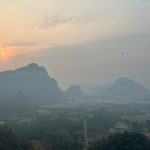 Da unsere Tubing-Tour erst heute Mittag starten sollte, haben wir gemütlich gefrühstückt und den Vormittag genutzt, um am Reiseblog und Marco für empirio zu arbeiten. Um 12 Uhr sind wir dann noch schnell einen Snack essen gegangen und wurden um 13 Uhr von unserem Hotel abgeholt. Wir wurden zu einem Booking Office gefahren, wo wir in ein anderes Tuk Tuk umsteigen sollten. Unterwegs haben wir noch andere Backpacker abgeholt, bis wir so voll waren, dass die letzten hinten auf dem Tritt stehen mussten. Wir fuhren 20/30 Minuten nach Norden bis wir am Fluss (Nam Song) rausgelassen wurden. Nach einer kurzen, akustisch unverständlichen Einweisung sollte jeder sich einen Reifen schnappen und ins Wasser steigen.