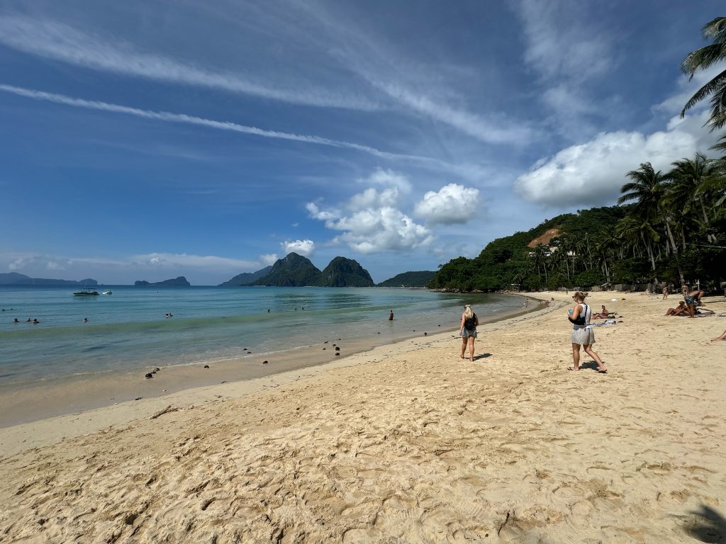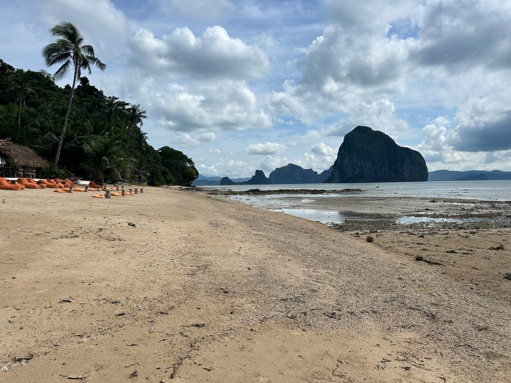 Nach dem Frühstück haben wir uns eine der vier Insel-Bootstouren ausgesucht und über das Hotel für den nächsten Tag gebucht. Heute fuhren wir zum ca. 15 Minuten entfernten Vanilla Beach im Süden von El Nido. Heute hat es mal nicht geregnet, erst war es sonnig und später bedeckt. Als die Sandfliegen ab 16 Uhr rauskamen, sind wir abgehauen.