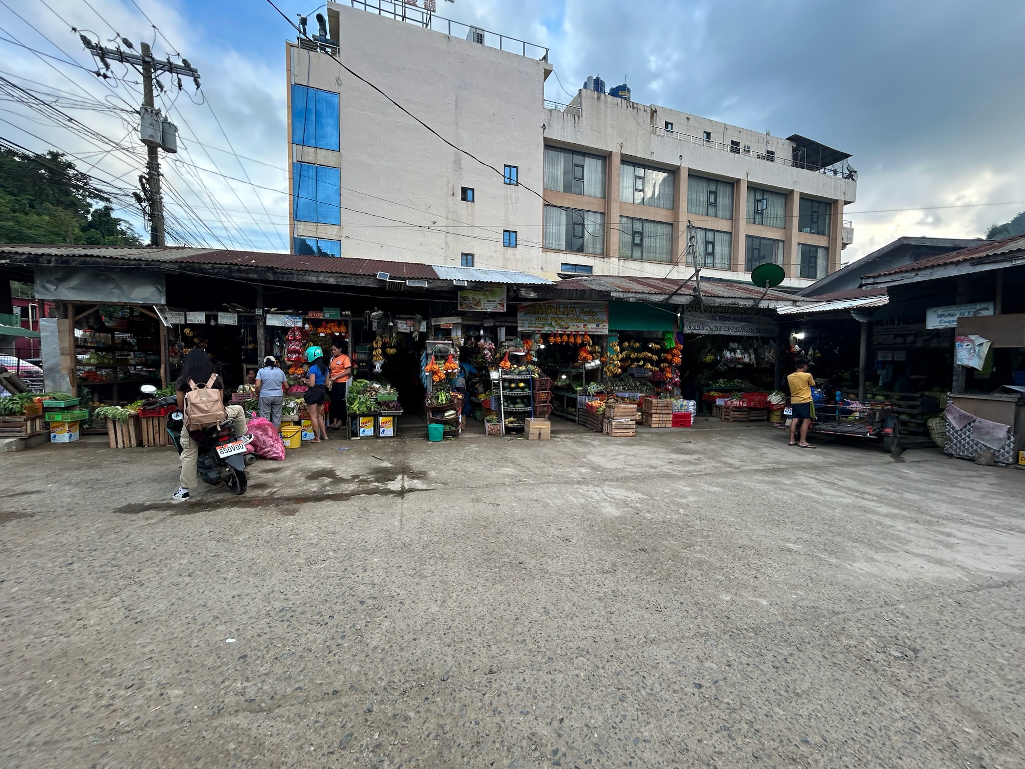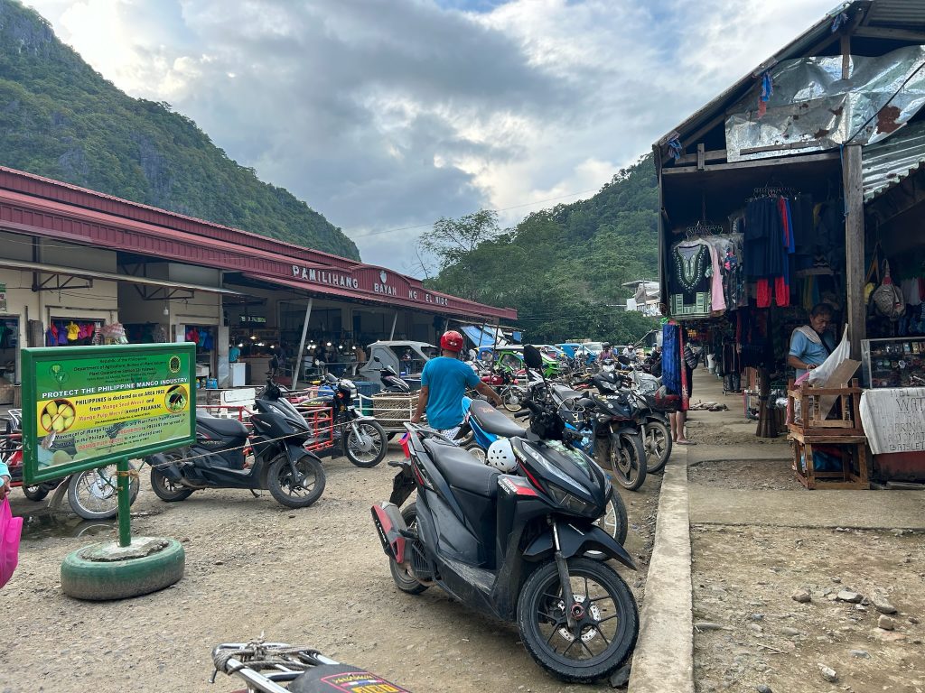 Auf dem Rückweg nach El Nido hielten wir am Public Market vor dem Ortseingang. Im Hotel gaben wir den Roller ab und bestellten Frühstück für den nächsten Morgen im Hotel, da es früh losgeht. Abends liefen wir in die Stadt zum Abendessen und kauften Wasser und Snacks für den nächsten Tag. Später ging Marco noch mit einem Tagespass in ein Fitnessstudio.
