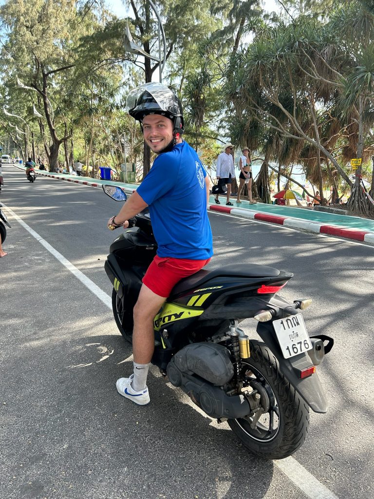 Heute wollten wir auf dem Weg zum Strand am Chalong Pier halten, um uns über die Fähre zur Insel Koh Phi Phi zu erkundigen. Wir haben auch einen entsprechenden Shop gefunden, die Fähre fährt allerdings gar nicht von hier, wie wir laut Google Maps dachten, sondern von einem anderen Pier, der deutlich weiter im Norden von unserer Unterkunft liegt. Wir haben uns entschieden, hier das Ticket für den nächsten Tag zu kaufen, da auch ein Abholservice vom Hotel und die Fähre von Koh Phi Phi weiter zum Festland nach Krabi mit drin ist. Ist das auch erledigt.