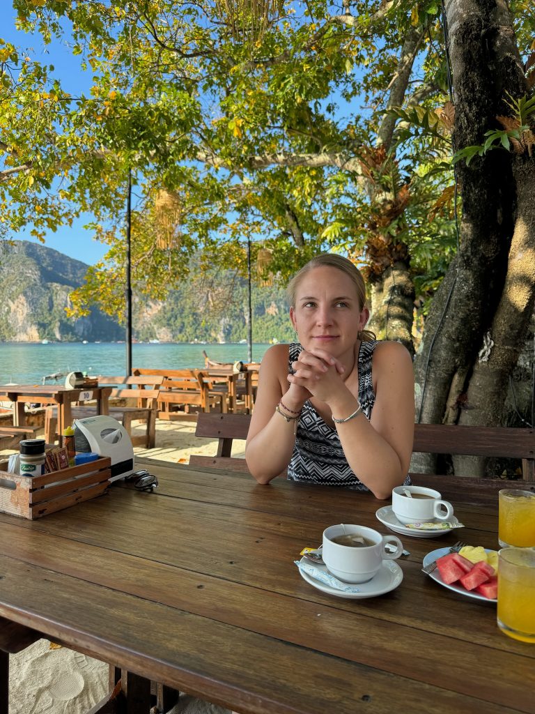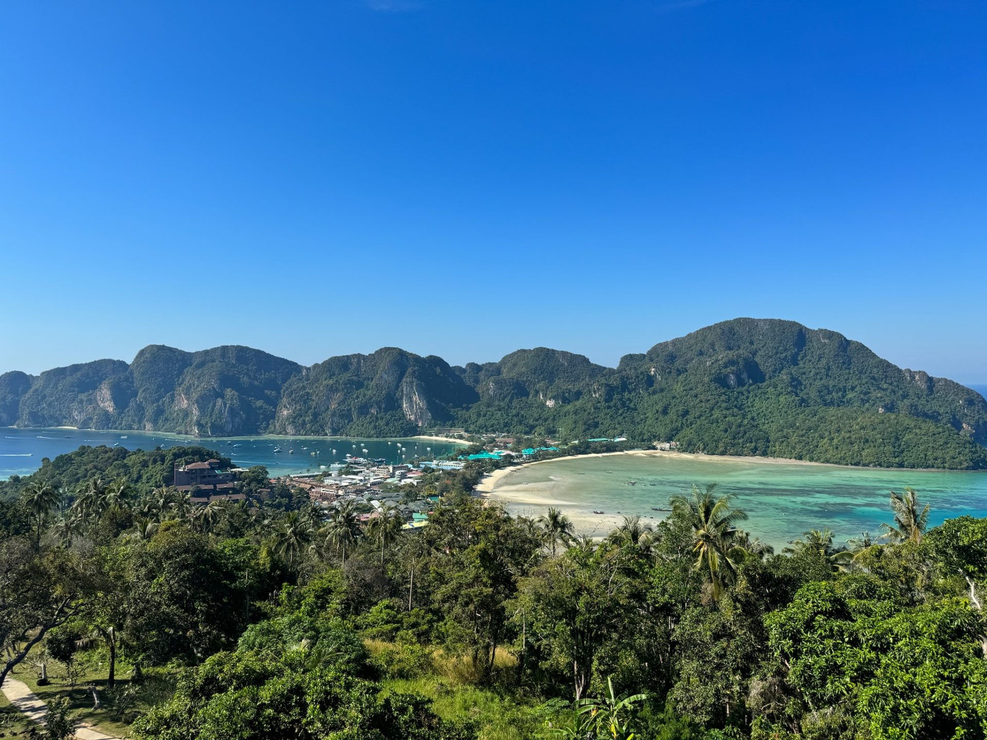 Wir fanden ein nettes Frühstücksrestaurant in der abgelegeneren Richtung von unserem Hotel aus direkt am Wasser. Von hier starteten wir unsere heutige kleine Wanderung zu ein paar Aussichtspunkten der Insel. Wir sind aus Versehen falsch abgebogen und kamen dadurch über einen anstrengenden Umweg über den Berg, sozusagen hinten rum beim View Point 2 an (ja, sie sind einfach durchnummeriert). Danach liefen wir weiter hoch zum View Point 3 und auf dem Rückweg zu View Point 1. Bei allen hat man eine super schöne Aussicht auf den Ort am Hafen zwischen den beiden Buchten, nur aus unterschiedlichen Höhen. Zurück im Ort angekommen, suchten wir uns ein Lokal für einen Mittagssnack. Danach gingen wir zurück ins Hotel, um uns umzuziehen.