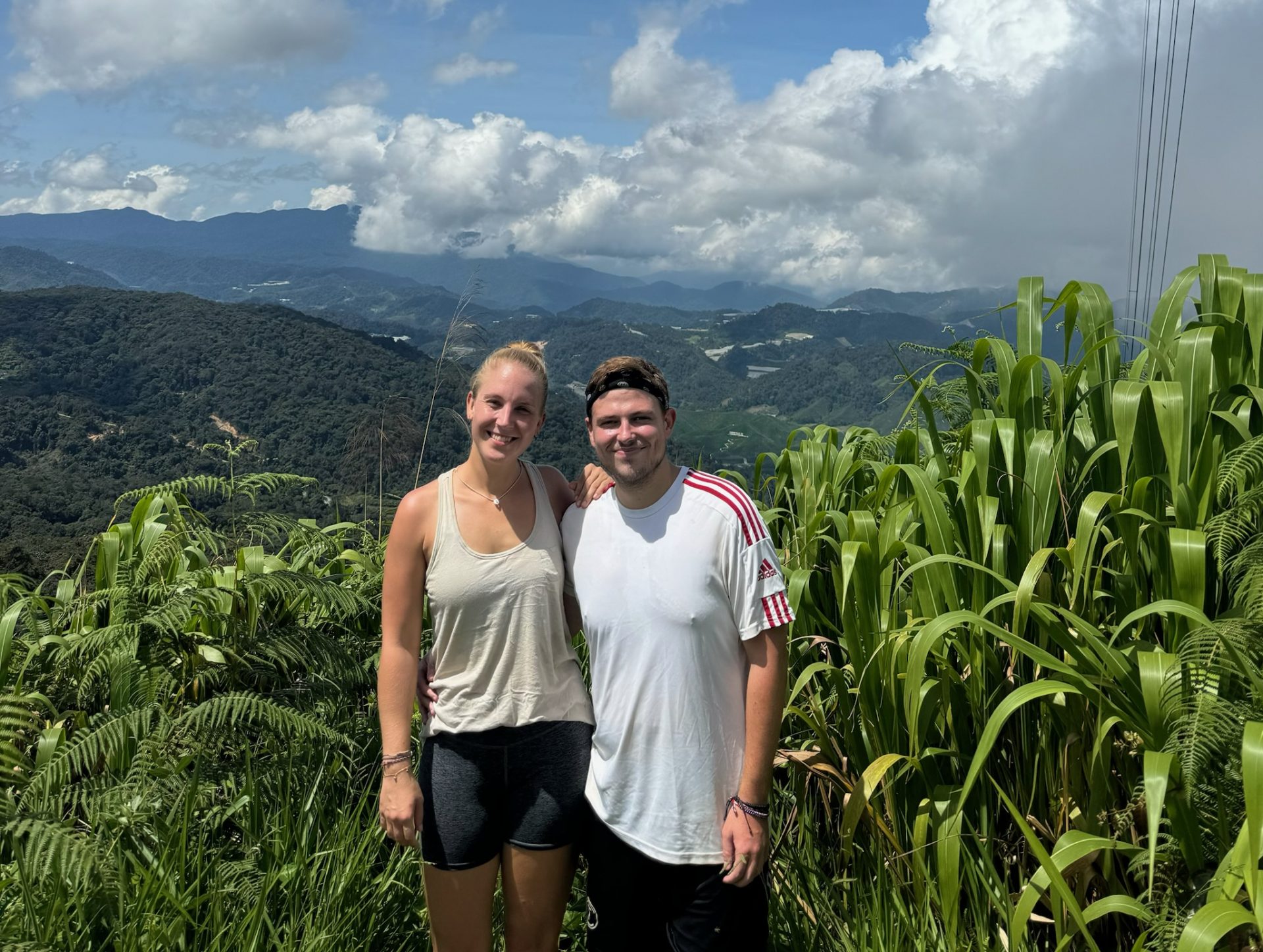 Um 8:30 Uhr saßen wir in einem Café um die Ecke zum Frühstück. Da die Rezeption erst ab Mittags besetzt ist, buchten wir per WhatsApp über unser Hostel eine Halbtages-Tour (10€) für den nächsten Tag. Nach einem kurzen Zwischenstop im Zimmer ging es los Richtung Stadtrand. Wir wollten heute eine der beliebtesten Wanderrouten machen und mussten dafür Trail 10 wandern, der in Trail 6 übergeht. Wir hatten vorher im Internet gelesen, dass die Trails wohl schlecht ausgeschildert und teilweise verwildert sind, sodass sich schon Leute verlaufen haben. Den Startpunkt von Trail 10 fanden wir zum Glück beim ersten Versuch am Ende einer Straße. Ein steiler, ausgetretener Pfad führte über viele Wurzeln durch den Wald den Berg hoch. Kurz vor der Bergspitze ging die Vegetation in Büsche und Gräser über, sodass wir schon ins Tal blicken konnten. Am Ende kamen wir zu einem weniger idyllischen Aussichtspunkt unter einem riesigen Strommasten. Hier machten wir eine kurze Pause und kamen dabei mit einer englischen Backpackerin ins Gespräch.