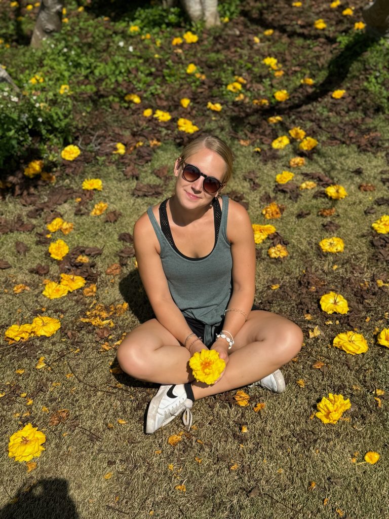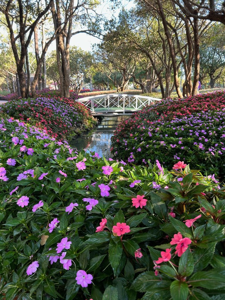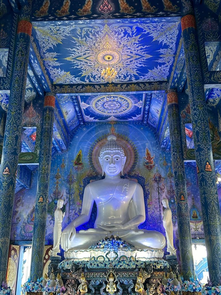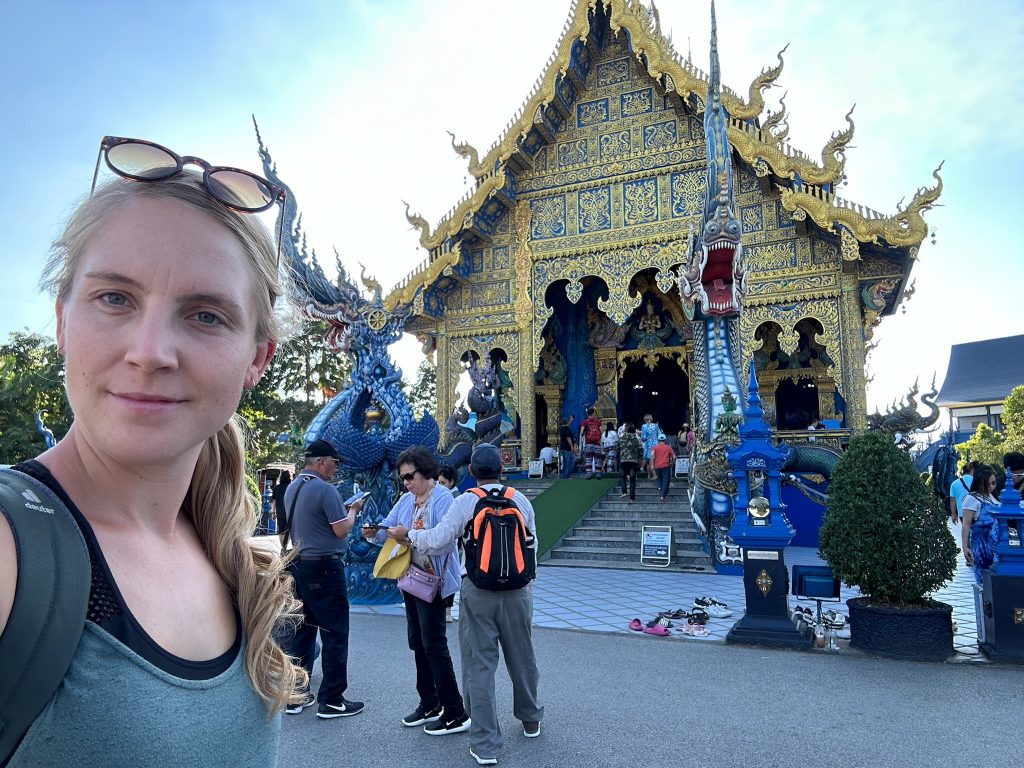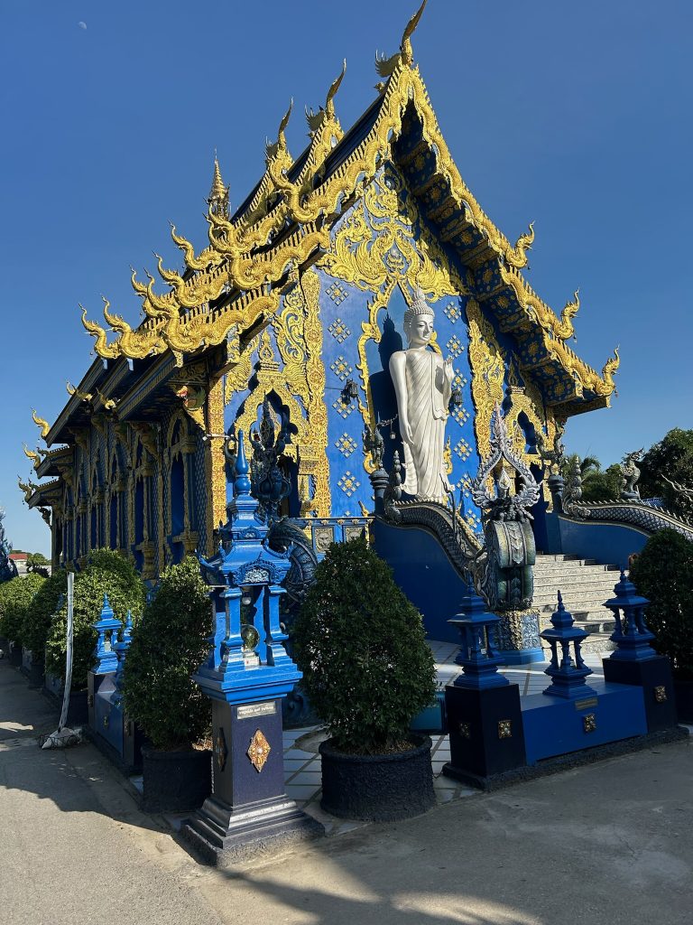 Nach dem Rückweg in die Stadt wollte Marco sich lieber wieder ins Bett legen, um sich auszuruhen, es war noch zu anstrengend für ihn. Deshalb fuhr ich alleine nochmal los, um mir den „Blue Temple“ anzuschauen, der innen und außen komplett in blau gehalten ist mit goldenen Verzierungen. Da ich noch etwas Zeit hatte, fuhr ich noch zu einem Blumengarten, durch den ich einen kleinen Spaziergang machte.