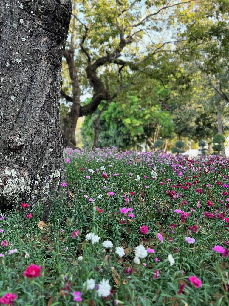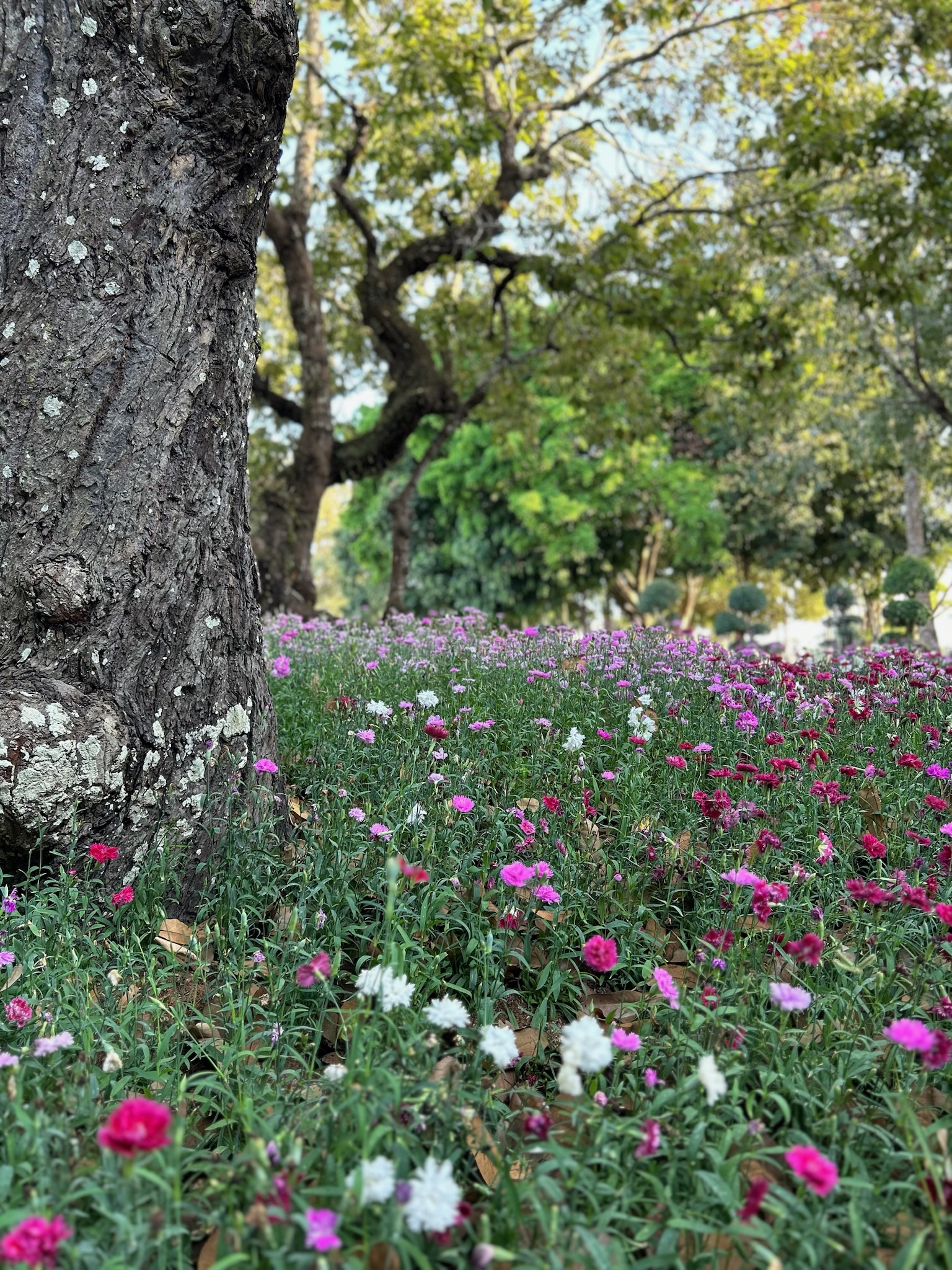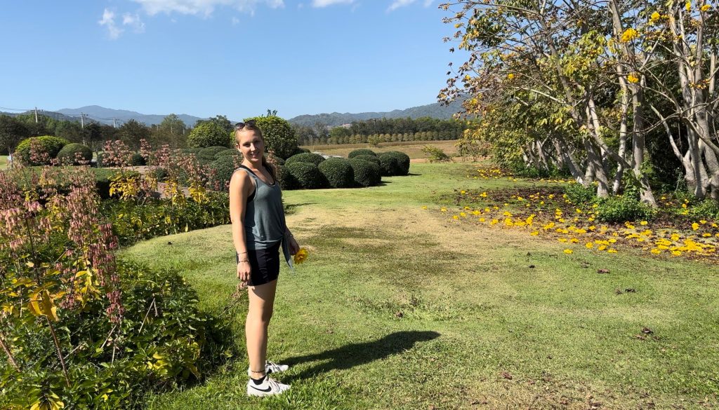 Von hier aus ging es zum Singha Park, eine große angelegte Parkanlage. Hier konnten wir ein bisschen mit dem Roller durch fahren, an Teeplantagen, Blumenfeldern und Blumenbeeten vorbei.