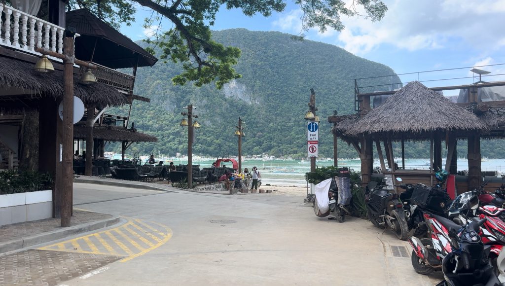 Heute früh mussten wir erstmal zur Bank, mal wieder Bargeld abheben. Danach liefen wir einmal durch den ganzen Ort zu dem Café, das wir uns für heute rausgesucht hatten. Zurück im Hotel verlängerten wir die Roller-Anmietung um einen Tag.