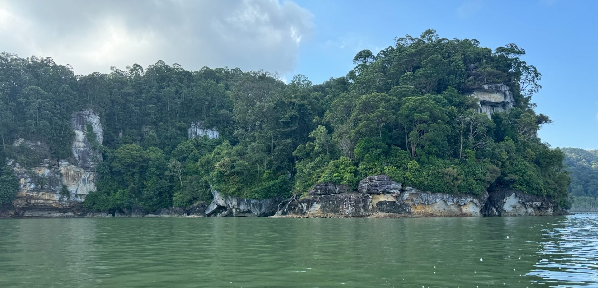 Heute wollten wir wieder in den Bako Nationalpark, aber diesmal wieder den Bus um 8 Uhr nehmen. Wir waren pünktlich an unserer Bushaltestelle, bezahlten die 20 Cent und kamen eine Stunde später am Park an. Wir waren gespannt, wie es dieses Mal klappen würde mit der Teilung des Bootes. Als wir aus dem Bus ausstiegen, sprach uns schon eine chinesische Touristin aus dem Bus an. Vor dem Registrierungsschalter war noch ein junges malaysisches Pärchen, das wir fragten, und so waren wir schon zu fünft. Die Chinesin blieb eine Nacht dort, deswegen mussten wir es preislich anders aufteilen – wie, haben wir nicht verstanden, aber wir mussten nur 18€ für unseren Anteil zahlen. Diesmal haben wir bei der Fahrt leider weder Delfine noch Nasenaffen gesehen. Da der Wasserstand um diese Uhrzeit höher war, wurden wir an einem Anleger rausgelassen und liefen durch die Anlage zur Rezeption, wo wir uns wieder registrieren mussten. Dabei haben wir ein Bartschwein mit einem Junges und danach einen großen, männlichen Nasenaffen direkt neben dem Weg im Baum gesehen! Wir suchten uns einen Weg aus und verabredeten uns mit den anderen auf 15 Uhr.